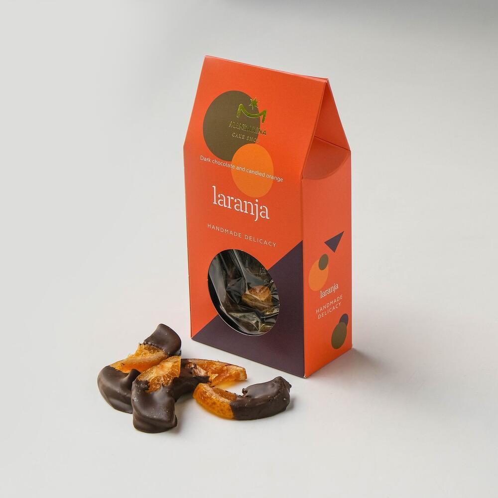 Candied orange dipped in dark Callebaut chocolate.