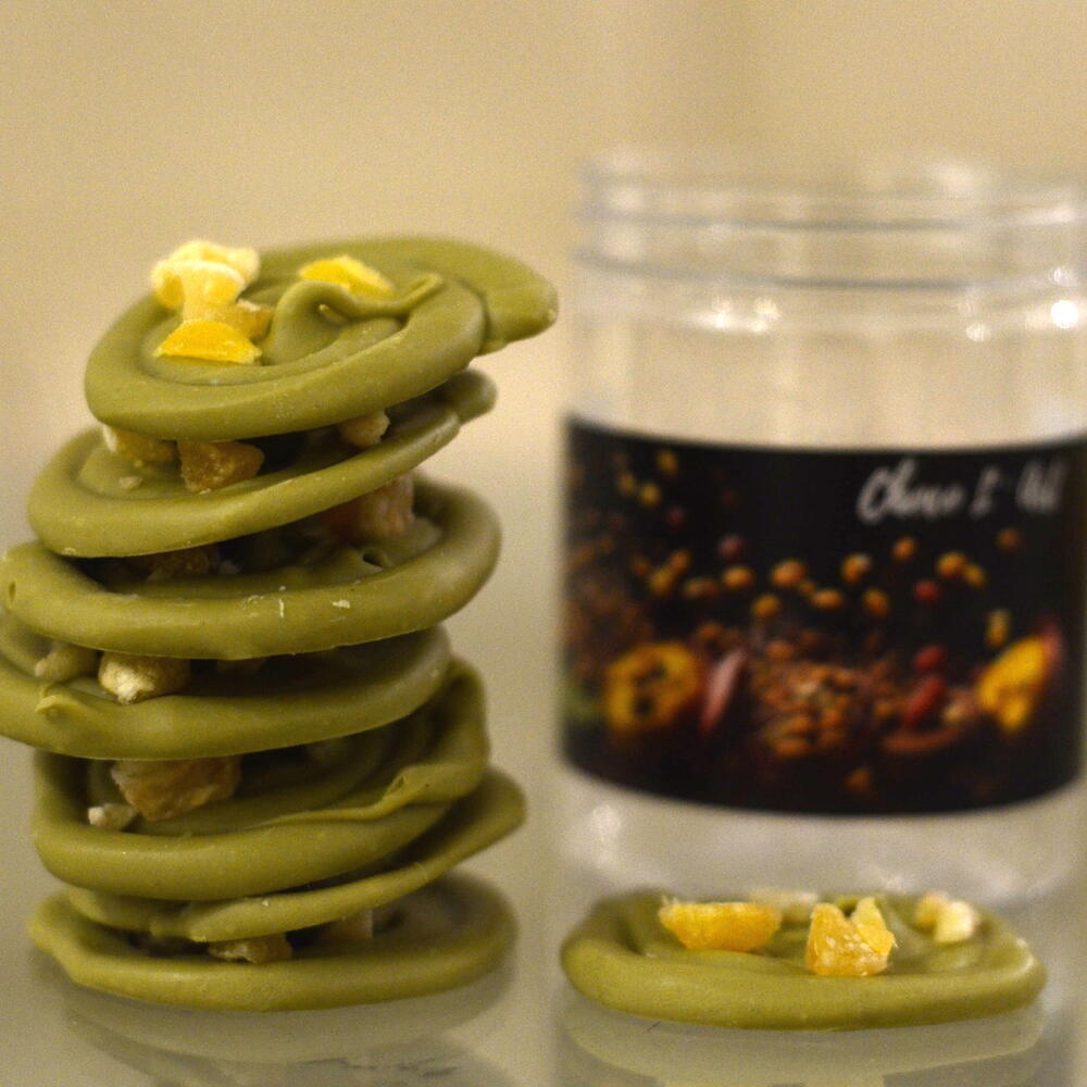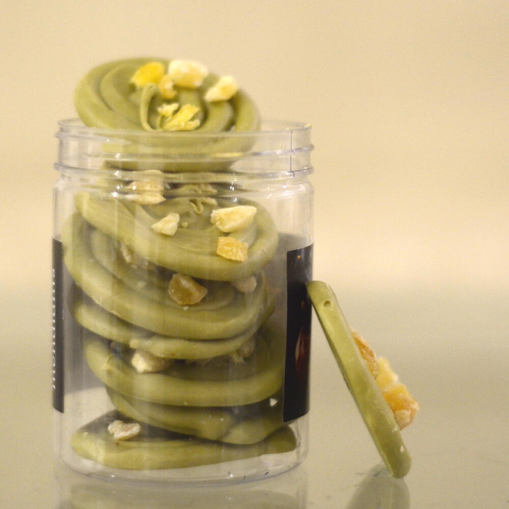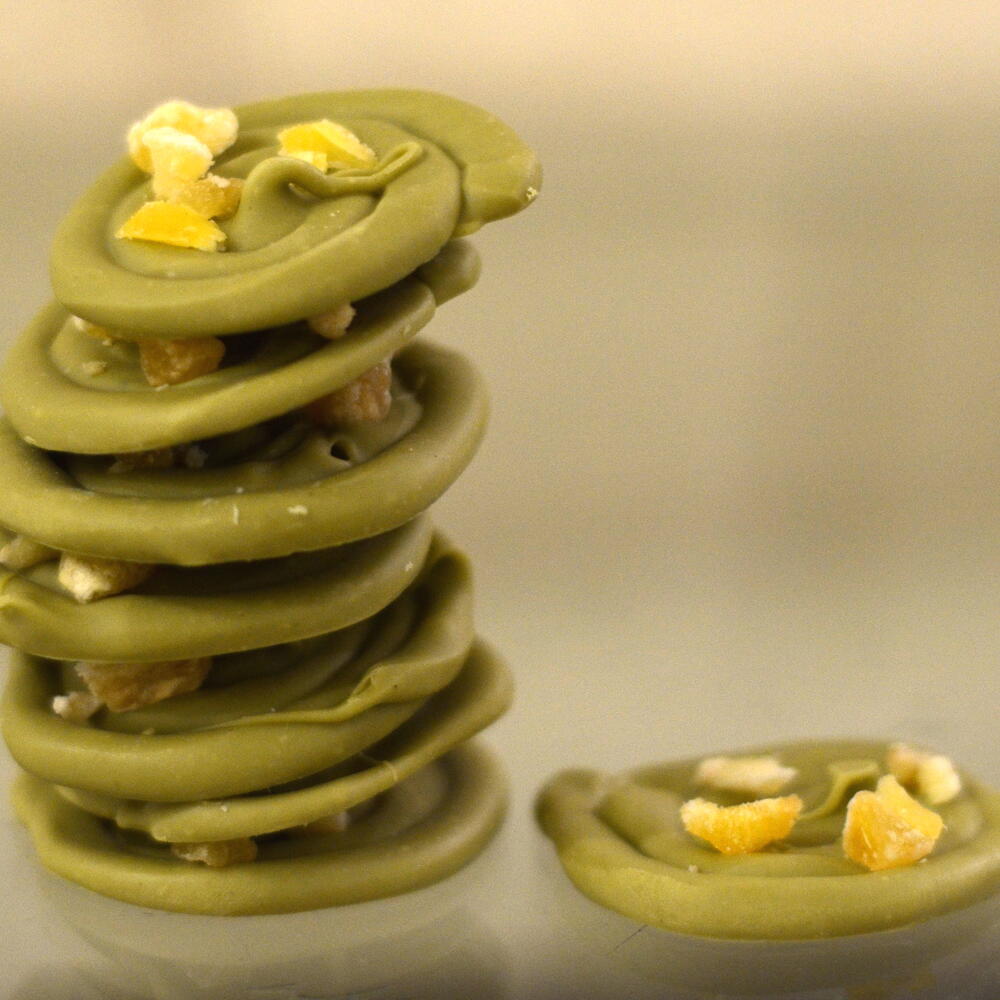 White chocolate, Japanese matcha tea, mint, candied ginger