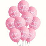 Bunch of 10 pcs of pink happy birthday Balloons filled with helium