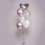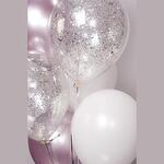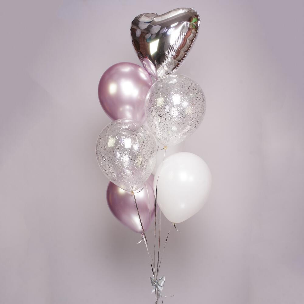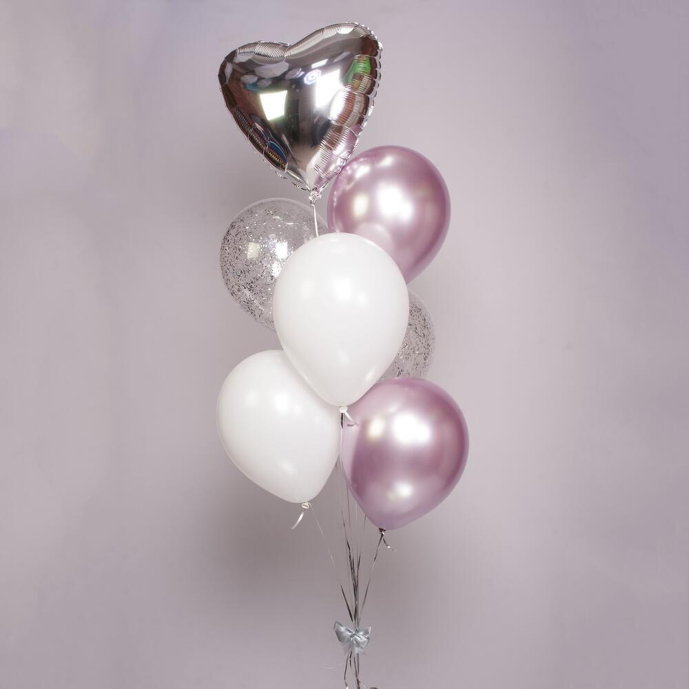 Универсальная композиция, подходящая для любого праздника и возраста) 7 шаров (фольгированные и латексные) с обработкой для длительного полета, увеличенного диаметра 35см (14 дюймов), собранные в фонтан на грузик. Доставляются в специальном транспортировочном пакете. Можно выбрать любой удобный часовой интервал в течение ближайших двух дней. При желании можно изменить цветовую гамму композиции - просто напишите свои пожелания в комментарии при оформлении заказа. Комплектация: 1 сердце серебро 2 шара с конфетти серебро 2 шара сиреневых хром 2 шара белых