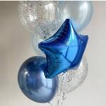 Наши шары отличного качества, они обработаны для долгого полета, наполнены гелием, идут с ленточками и грузиком в комплекте. Доставим в транспортировочном пакете в срок к вашему празднику. Открытку приложим и подпишем бесплатно с Состав композиции: воздушные шары с гелием 30 см в ассортименте - 6 шт. Фольгированная звезда с гелием 45 см синего цвета - 1 шт.