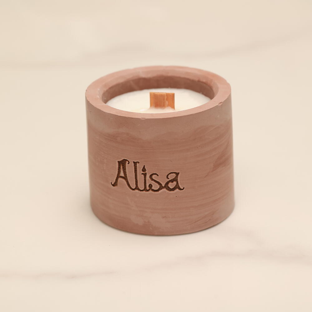 Ароматическая свеча в глиняном горшочке ручной работы с натуральным деревянным фитилём.