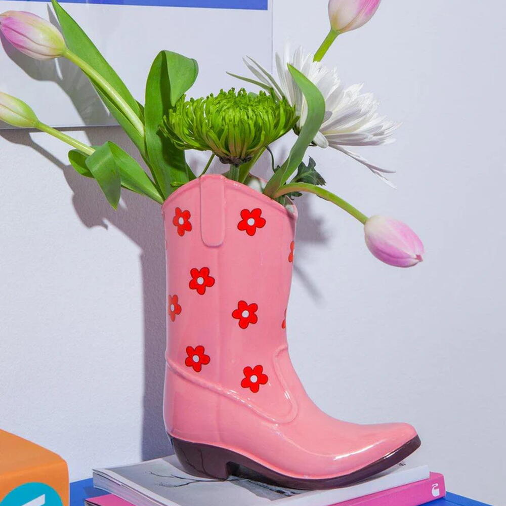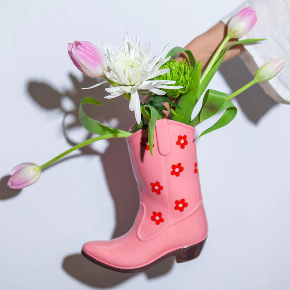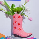 Yee-Haw! This cowboy boot-shaped vase brings a dash of Western chic to any space with its spirited and whimsical design. Vaza Rodeo - dekoracija poznatog španskog brenda DOIY. Yee-Haw! Ova vaza u obliku kaubojske čizme unosi zapadni šik u svaki prostor. Dimenzije: 19,5 x 23 x 8,5 cm, 1,43 kg Boja: roze Nega: Prebriši vlažnom krpom Materijal: Kamenina, Glazura u boji Brand: DOIY (Španija)