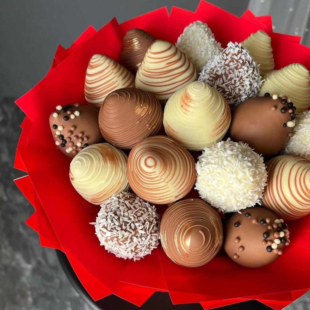 Strawberry bouquet in Belgian white and milk chocolate 19 pieces