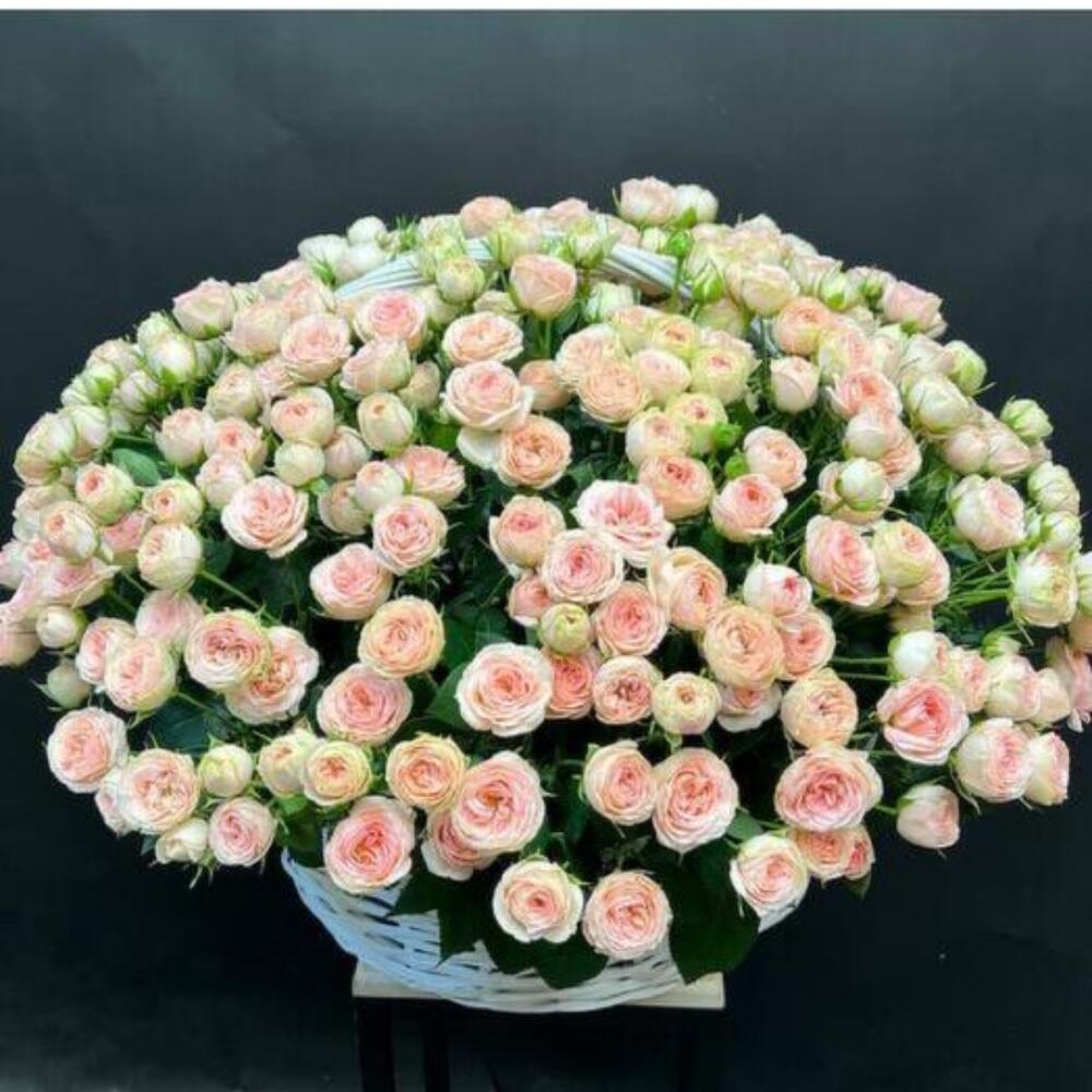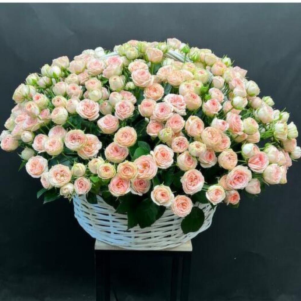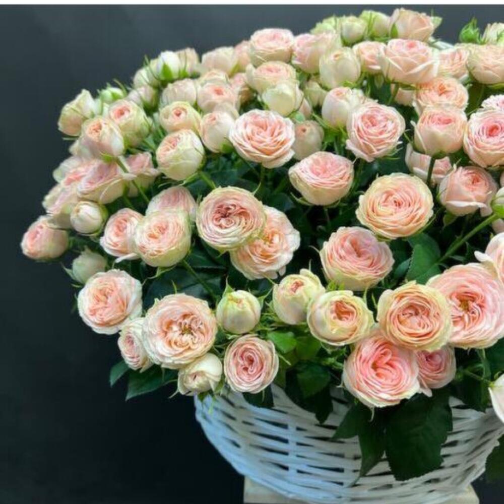 101 кустовая пионовидная роза в корзине🌹