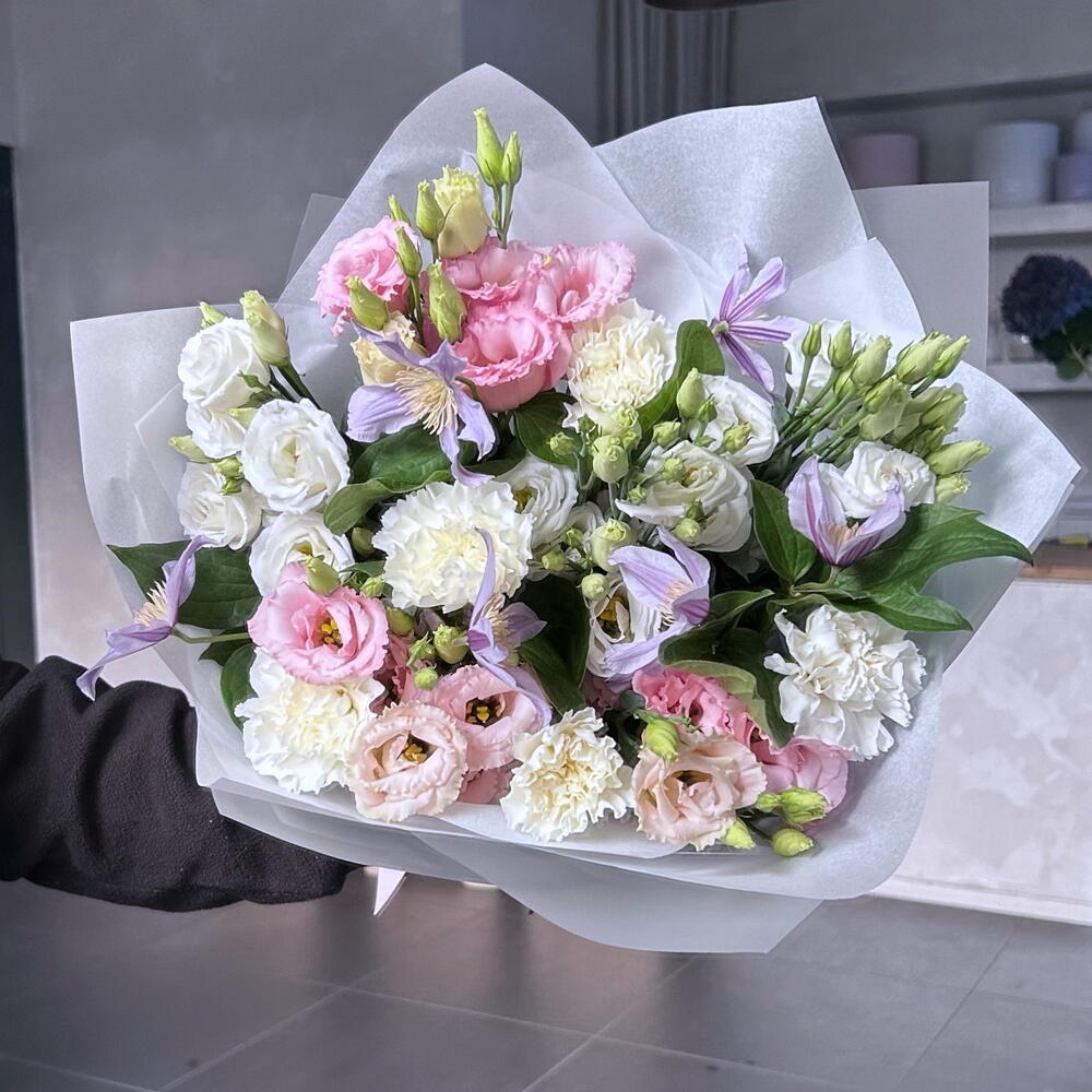 Eustoma - 6 шт. Clematis - 3 шт. goździk - 5 шт.