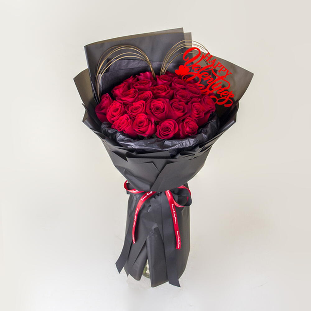 roses - 25 шт. happy valentines day topper - 1 шт. gold heart - 1 шт.