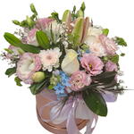 lisianthus pink - 4 шт. pink lily - 2 шт. white roses - 3 шт. chrysanthemum branches - 2 шт.