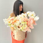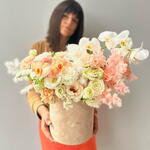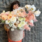 Statice - 7 шт. dried flowers - 4 шт. dianthus - 15 шт. orchid phalaenopsis - 2 шт. lizijantus - 10 шт. dilphinium white - 4 шт.