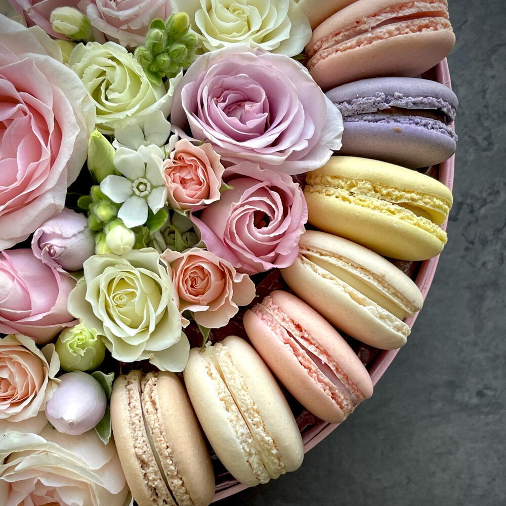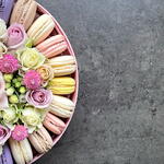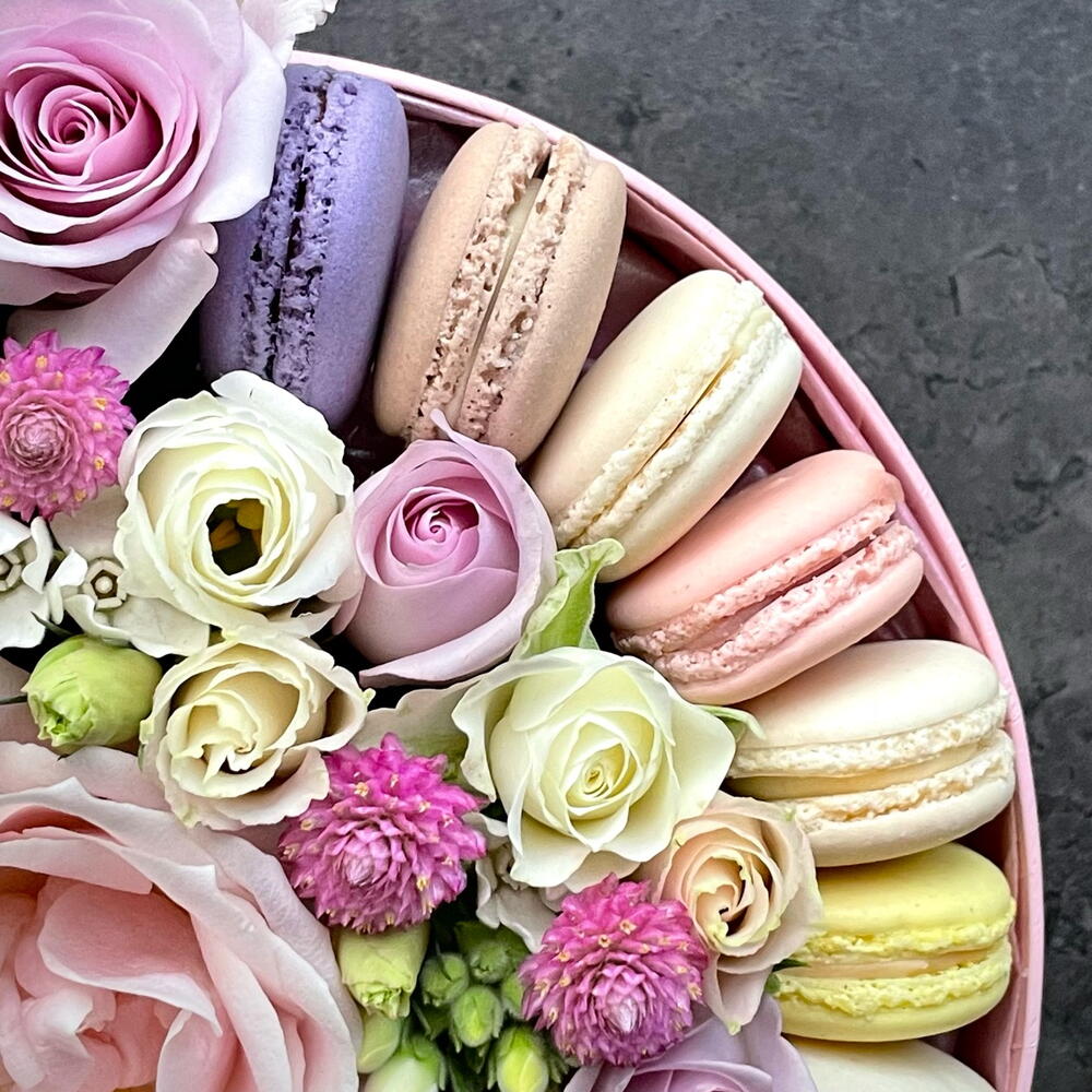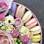 Flowers and macaroons in pink box M