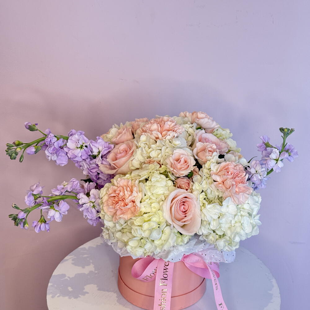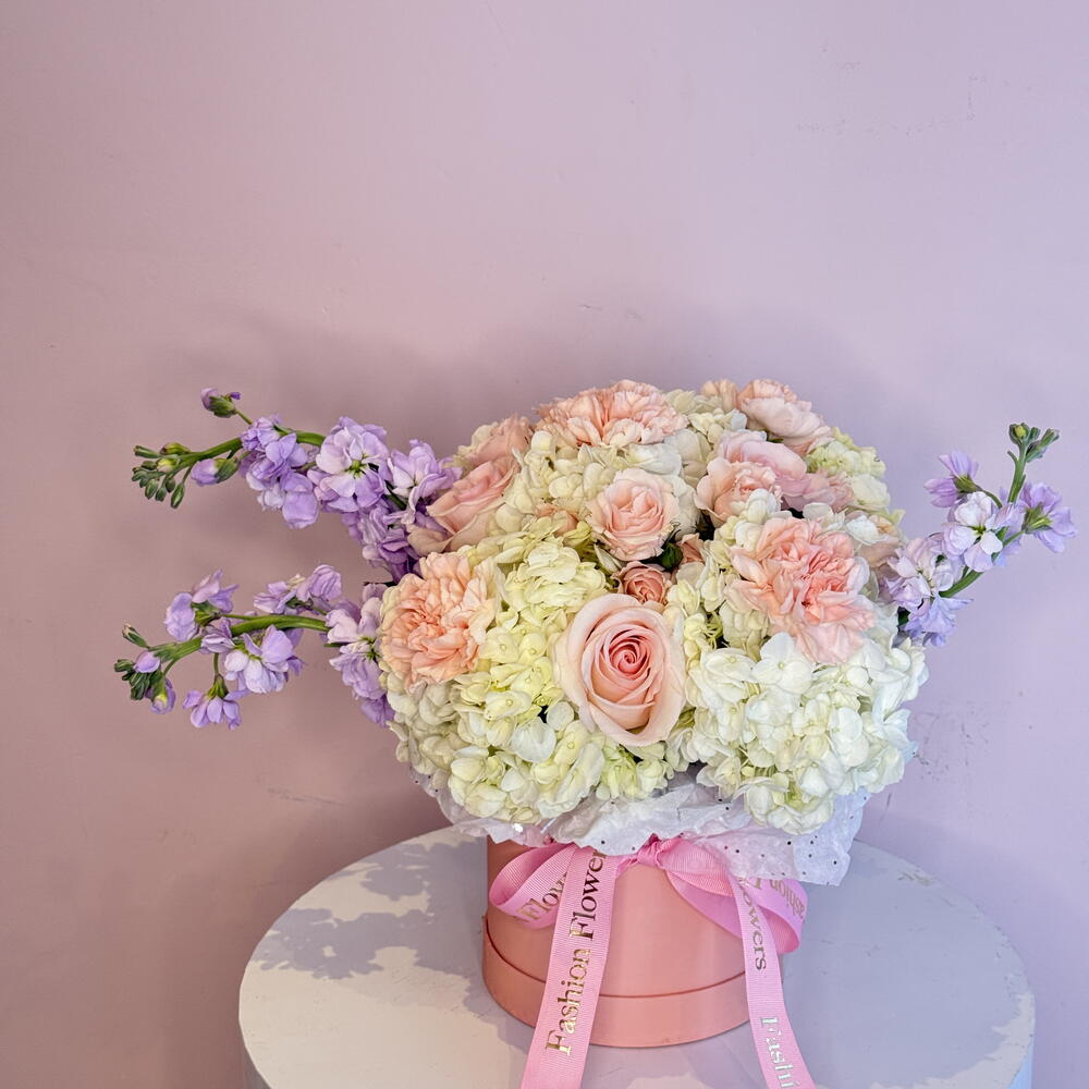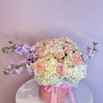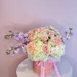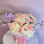 Spray rose - 5 шт. Hydrangea - 2 шт. stock - 3 шт. roses pink - 5 шт.