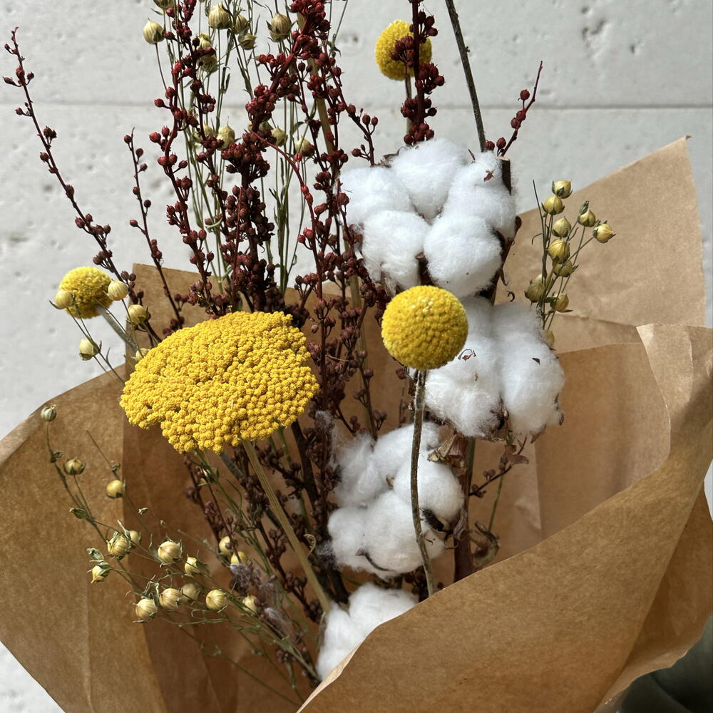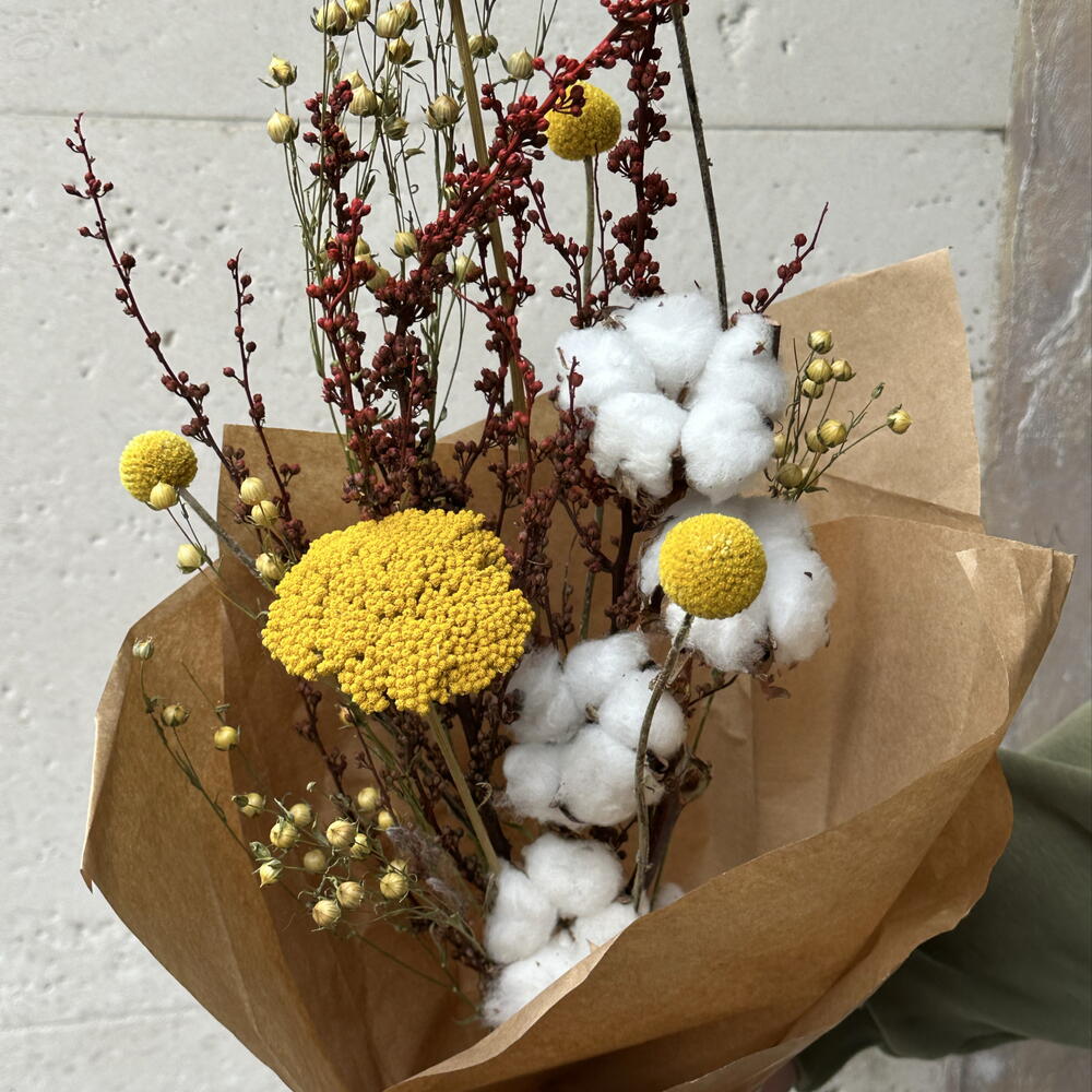 Cotton - 1 шт. achillea - 2 шт. craspedia - 4 шт. flax - 8 шт. branches red - 1 шт.