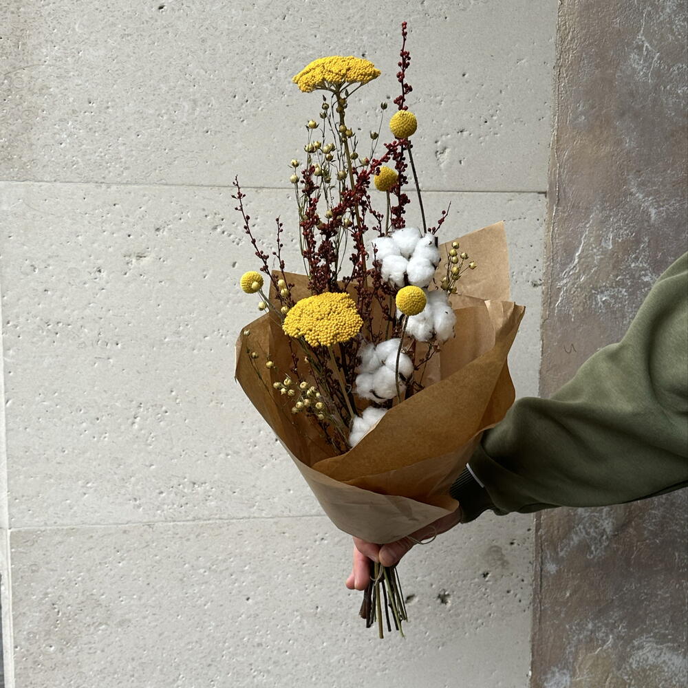 A dried flower bouquet is a wonderful gift! It doesn’t require any care — just place it in a vase and that’s it. It will add warmth and coziness to any interior