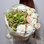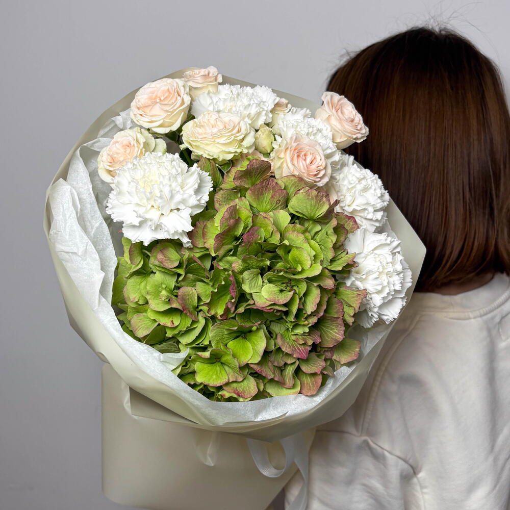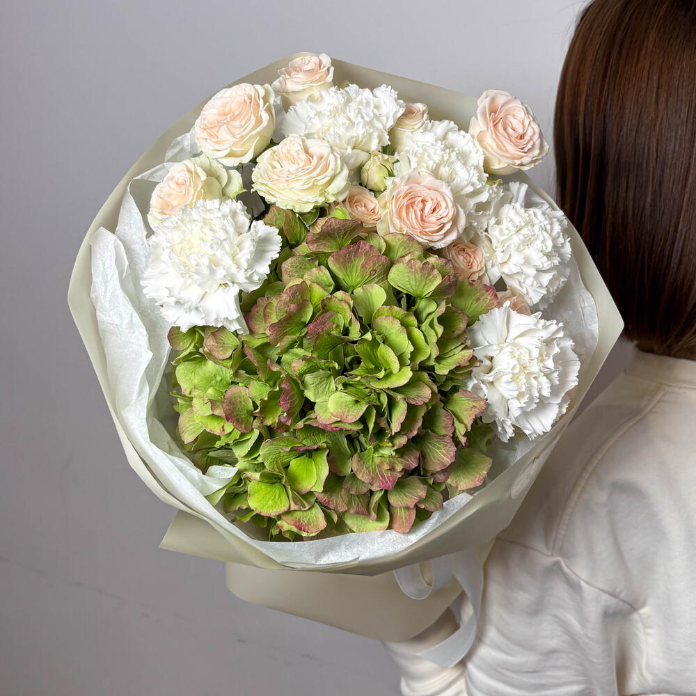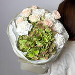 Spray rose - 2 шт. Hydrangea - 1 шт. dianthus - 5 шт. aquabox - 1 шт.