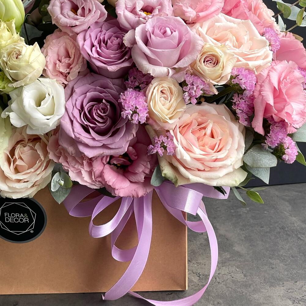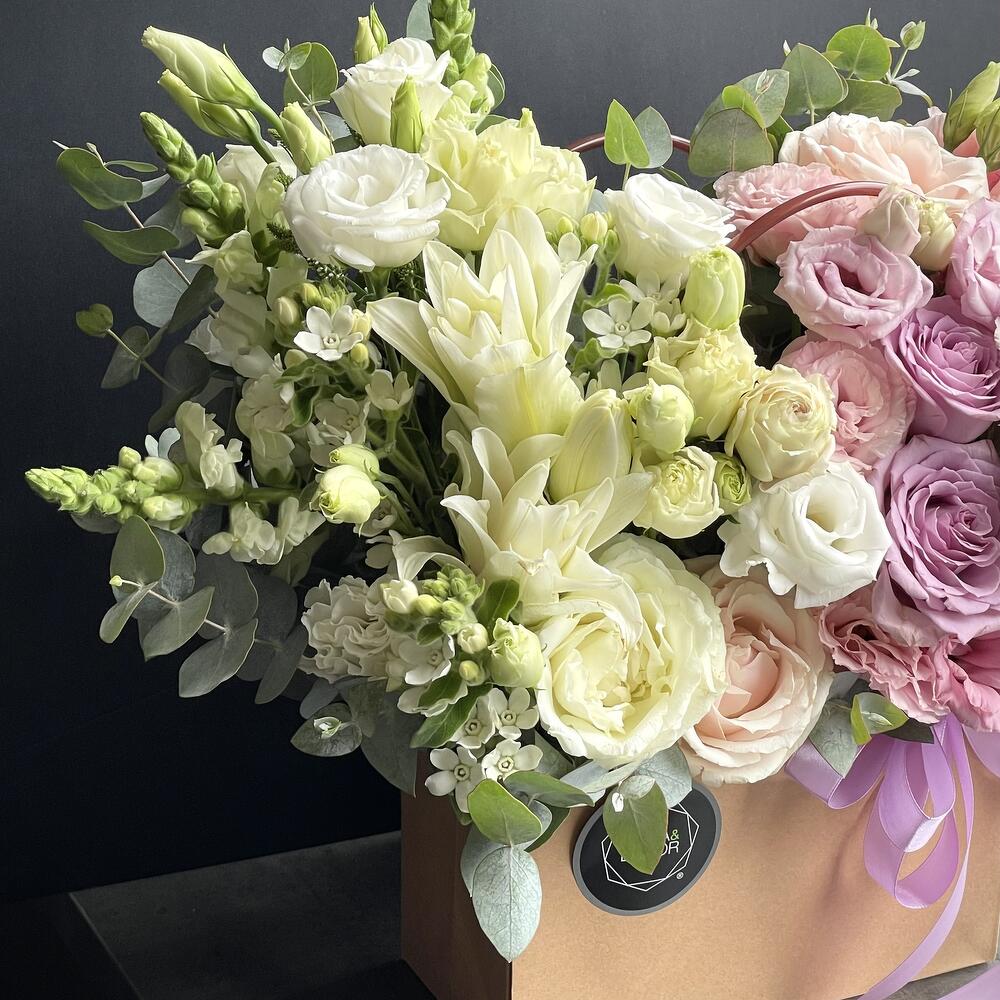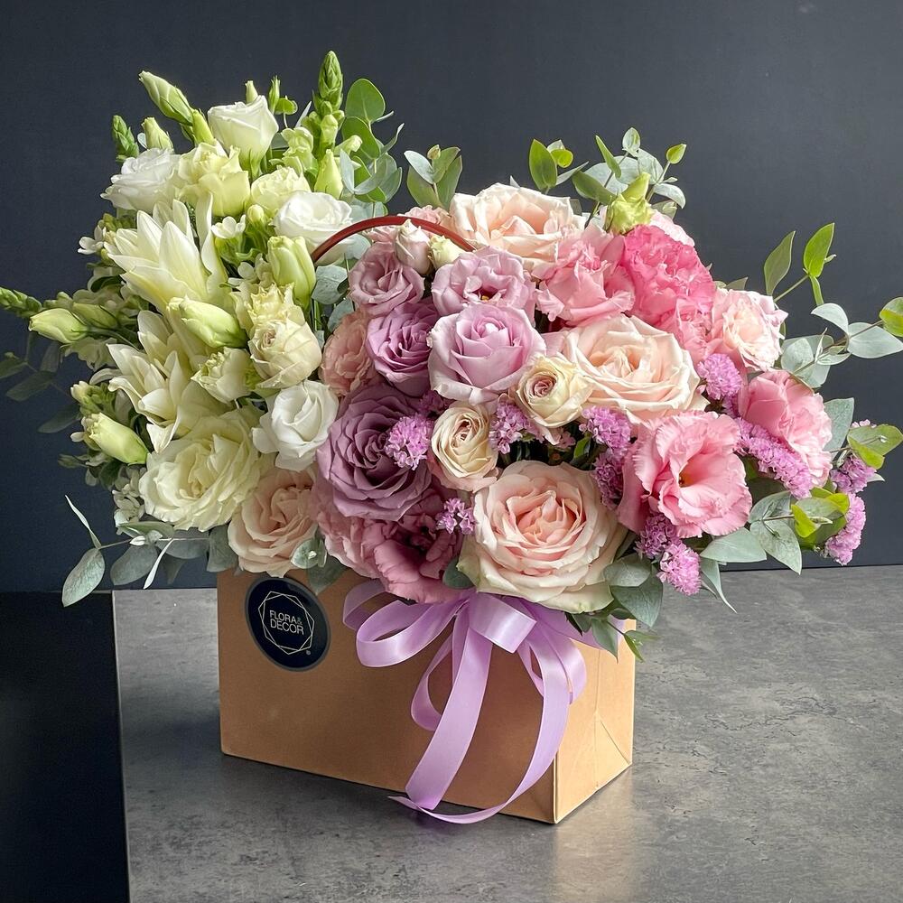 Meet our hit! Flower arrangement in a craft bag Happy Sunday! And a festive mood for you all day! The combination of the freshest lilies, roses, and lisianthus will make your day!