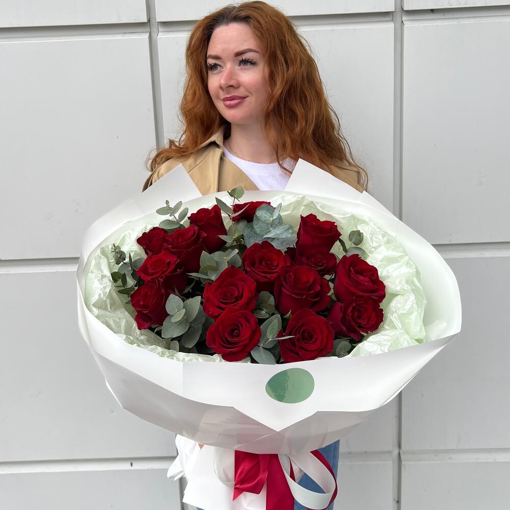 Эвкалипт - 1 шт. Роза - 15 шт. Упаковка - 1 шт.