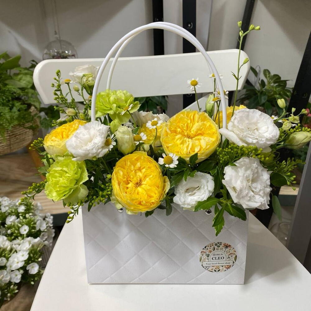 Dianthus caryophyllus - 2 шт. bag - 1 шт. eustoma grandiflorum - 5 шт. matricaria chamomilla - 3 шт. rosa hybrida - 4 шт.