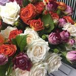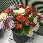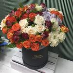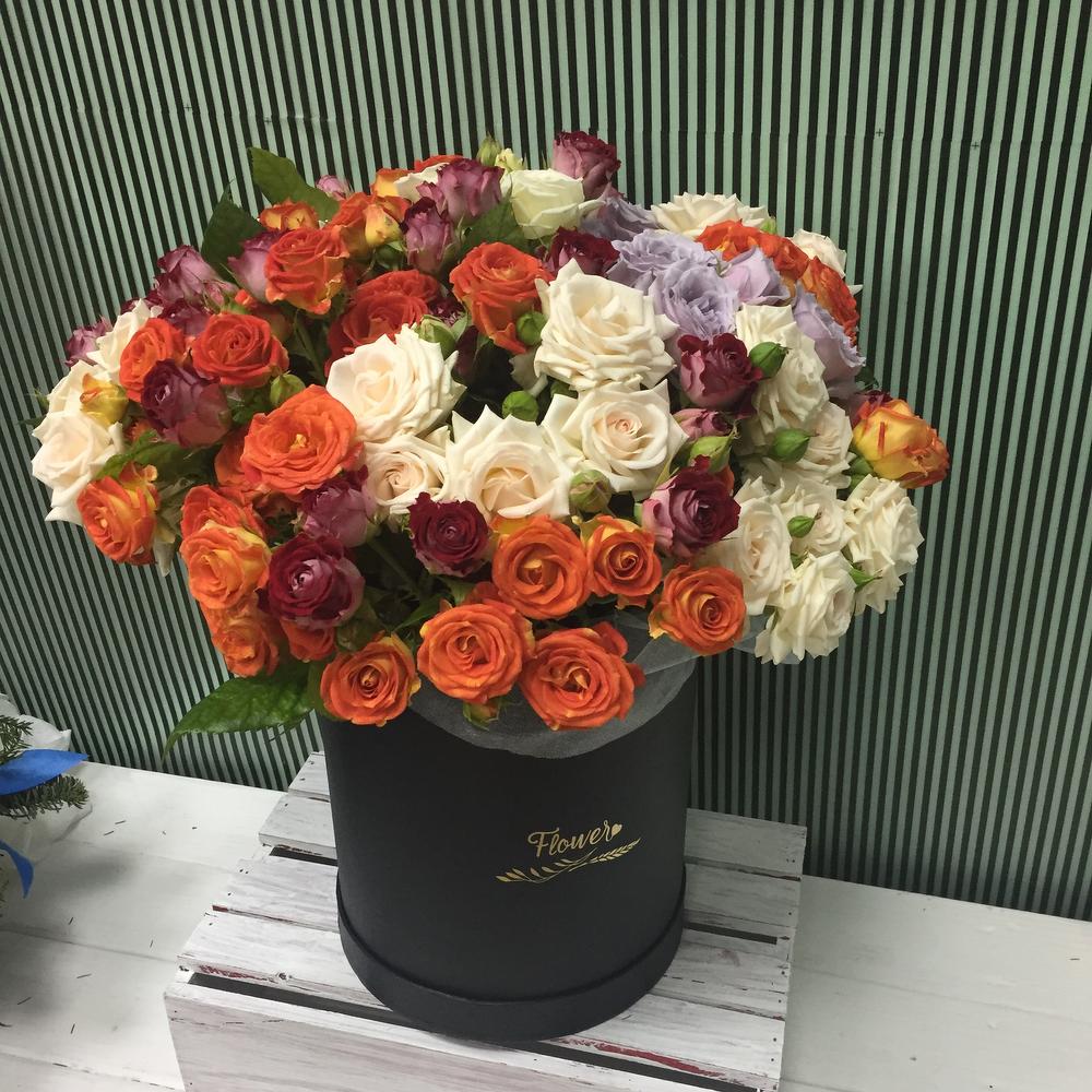 Take a trip out of town without leaving home - order this summer composition with a wonderful colored elegant roses and enjoy the beauty of lovely flowers! A cheerful arrangement of bright colors in a stylish hat box gives a cheerful mood that will not leave you for several days!