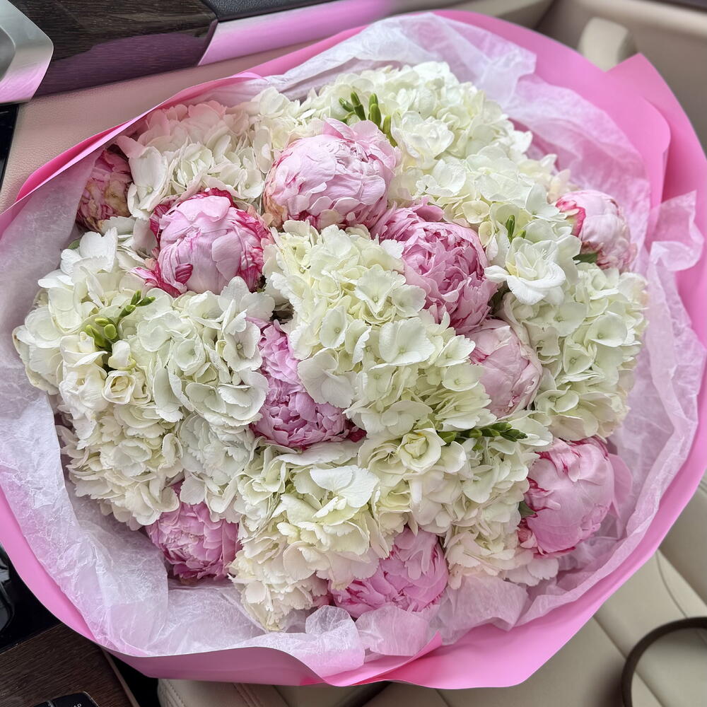 Гортензия - 10 шт. Пион - 10 шт. Фрезия Белая - 5 шт.
