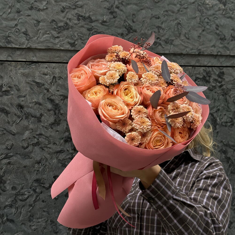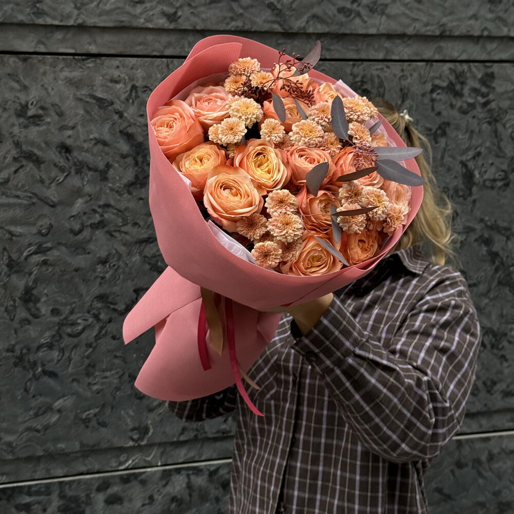 Chrysanthemum - 5 шт. rose - 15 шт. eukalyptus - 3 шт.