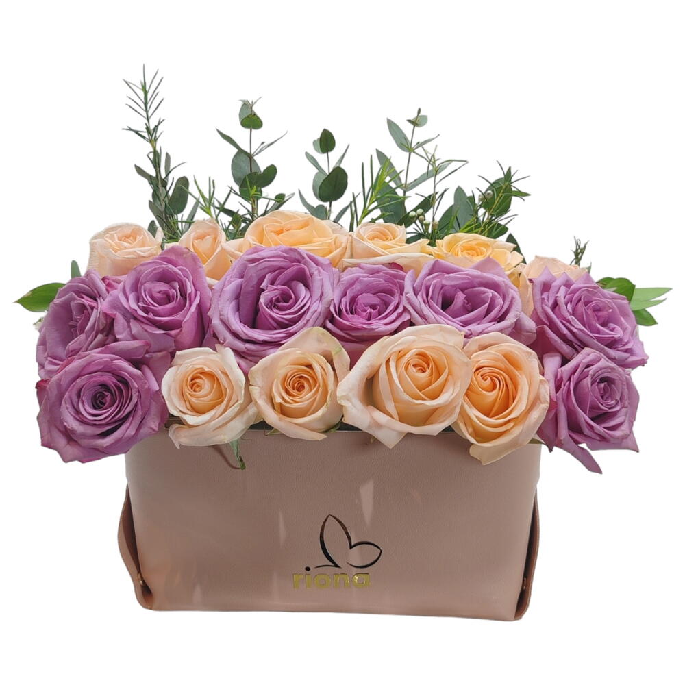 Eucalyptus - 5 шт. Wax flower - 2 шт. purple rose - 10 шт. pink roses. - 8 шт.
