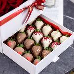 Коробка - 1 шт. Красная роза - 12 шт. Клубника в шоколаде - 16 шт.