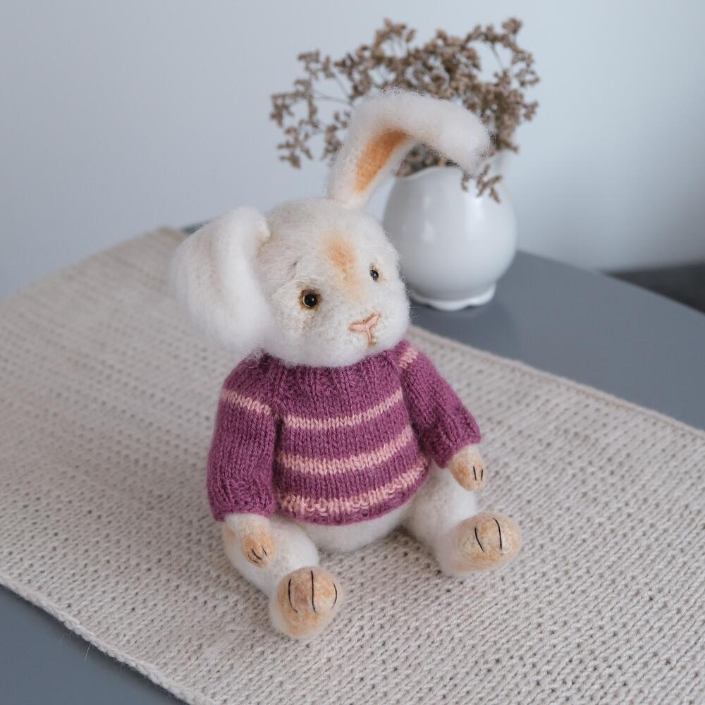 Šarmantni zeka u tedi stilu — nežan pratilac za vas ili vaše najmilije. Ručno je izrađen s ljubavlju i pažnjom na detalje. Glava, ručice i nožice su pokretne — pričvršćene šplint sistemom i lako se rotiraju. Uške su na žičanoj osnovi i mogu se blago oblikovati. Zeka je napravljen od kvalitetne moherove pređe i ispunjen hipoalergenim silikonskim vlaknom. Džemper se skida. 📏 Visina: oko 30 cm (u sedećem položaju — 22 cm) 🎨 Boja: bela, džemper — šljiva boja 🧼 Nega: samo suvo čišćenje. Ne prati i ne kvasiti. ⚠️ Napomena: boja igračke može malo da varira u zavisnosti od podešavanja ekrana. Ako imate neka pitanja — slobodno mi pišite u Flowwow četu. Želim vam prijatnu kupovinu i topao dan! S ljubavlju, Oksana