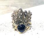Серебряное кольцо в этническом стиле с выращенным сапфиром . Подчеркните свою индивидуальность и великолепный вкус с нашими изделиями из серебра 925 пробы.Вес изделия9.2гр.Размер кольца17.5 и18.