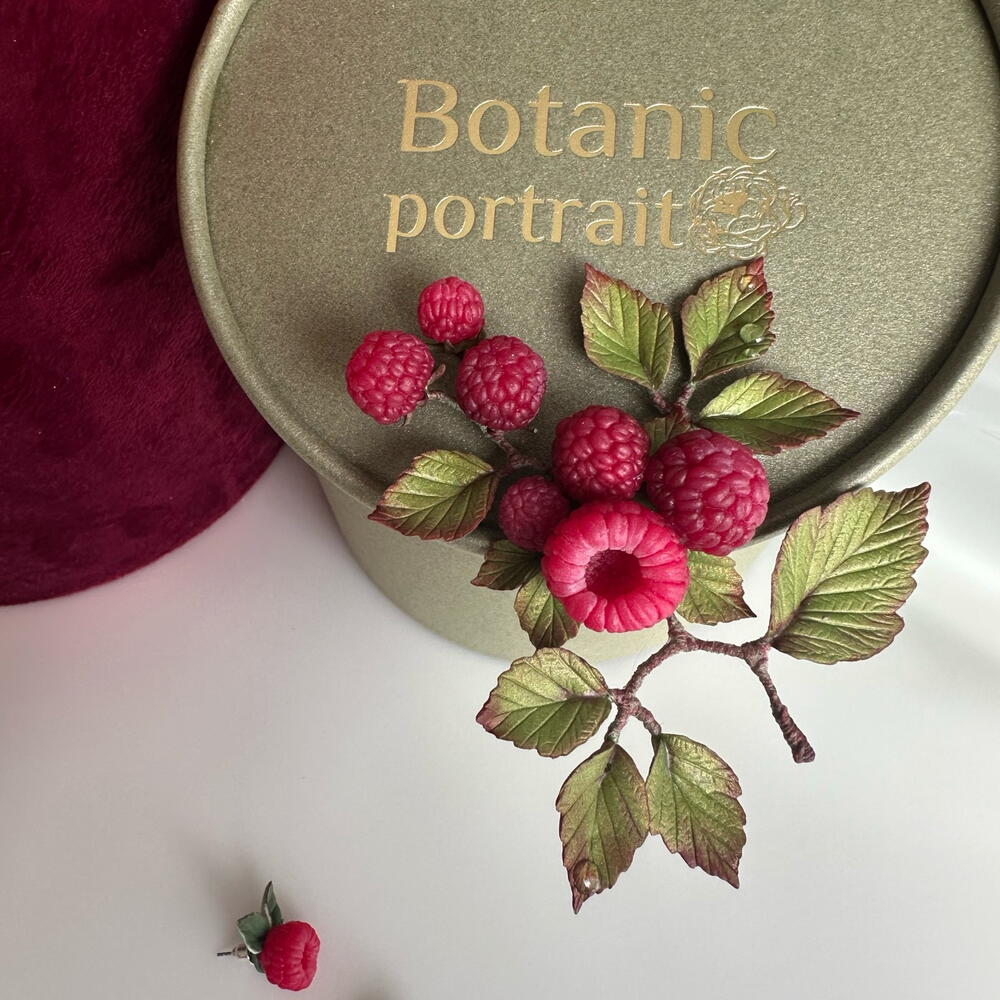 Brooch handmade from polymer clay, collection “Botanic Portrait” exactly repeats berries and leaves as nature created them. Give the gift of summer to your loved one, and he will wear it on him and remember you with great warmth. The items arrive in beautiful gift boxes.
