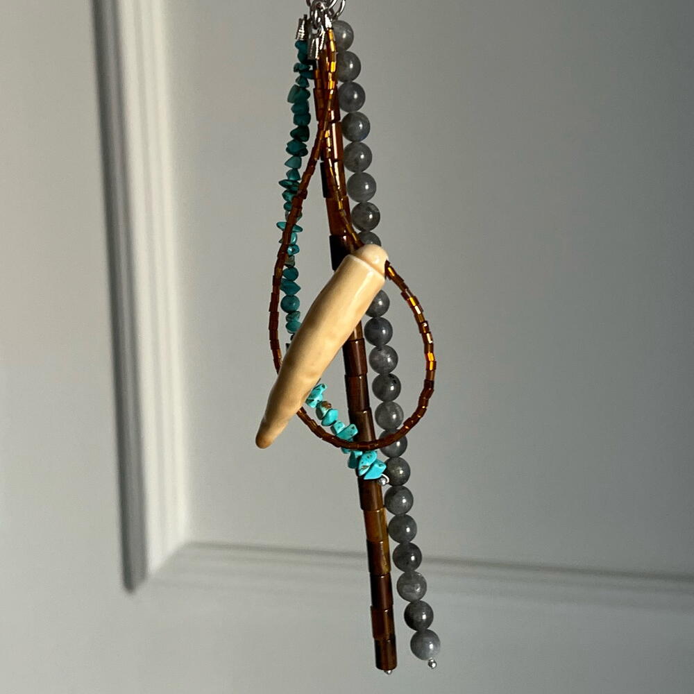 Handmade bag charm, made of natural stones and stainless steel. Stylish acessory for your outfits. Fast delivery in Belgrade.