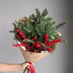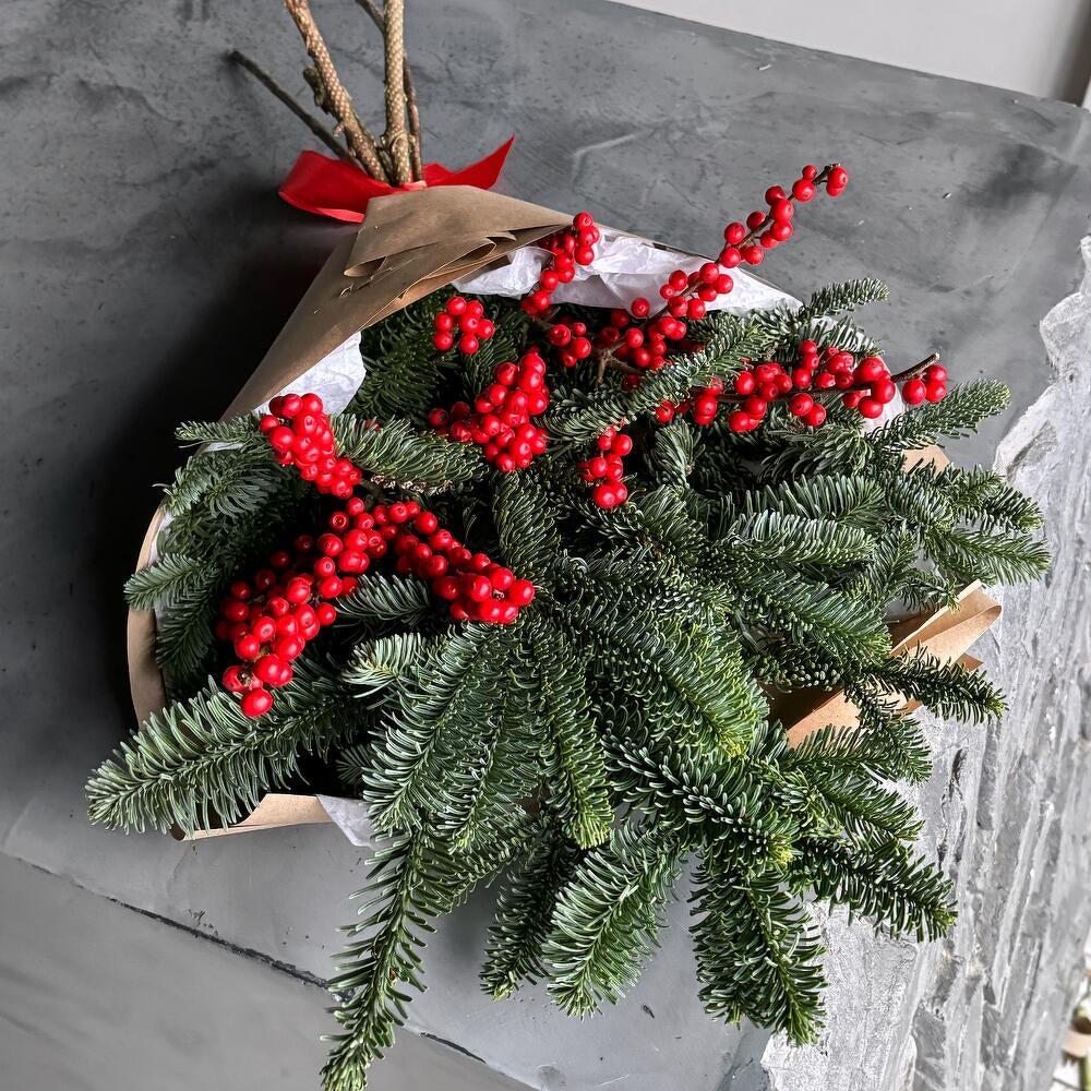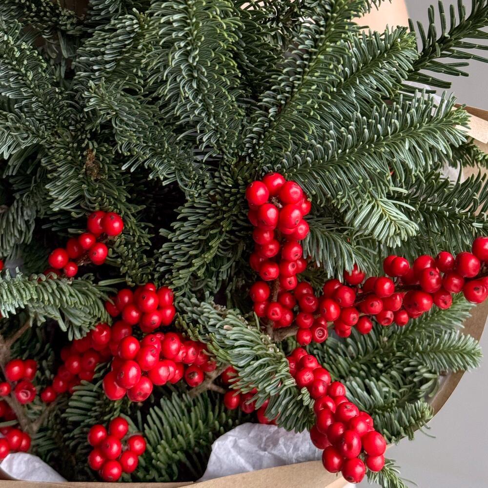 Новогодний букет голубая ель нобилис и ягодки илекс