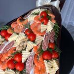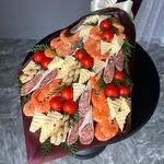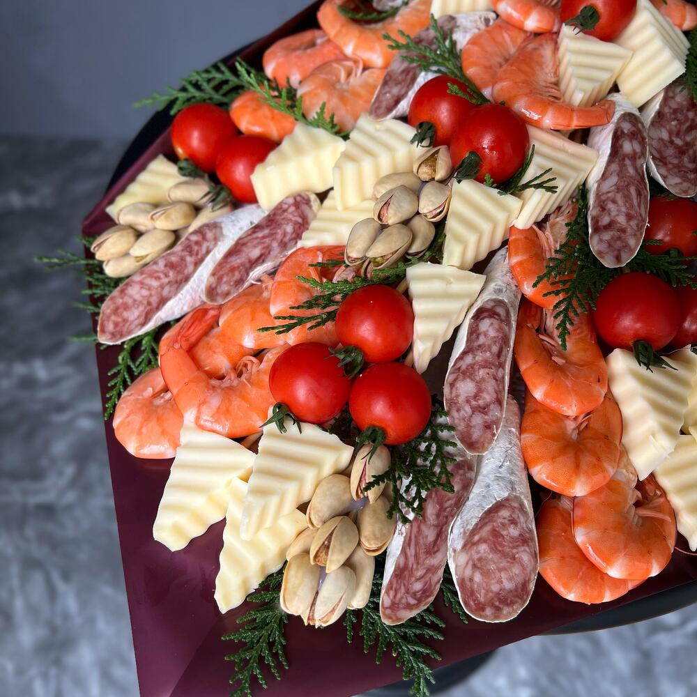 tomatoes - 150 гр. pistachio spike - 3 шт. edamame cheese - 300 гр. king prawns - 300 гр. fouette sausage - 1 шт.