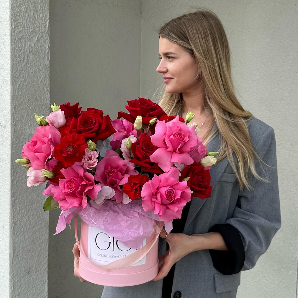 Eucalyptus - 5 шт. Lisianthus - 3 шт. carnation - 8 шт. french rose - 22 шт.