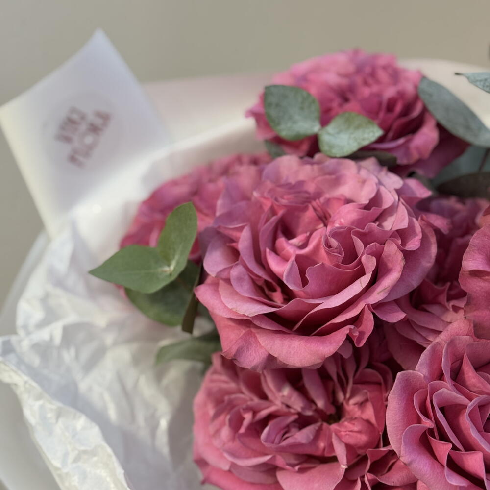 Romantyczny i niezwykle elegancki bukiet z róż Country Blues o wyjątkowym, pudrowo-różowym odcieniu. Duże, pełne kwiaty o delikatnie pofalowanych płatkach nadają kompozycji szlachetny, ogrodowy charakter i przyciągają uwagę swoją strukturą oraz głębią koloru. Subtelny eukaliptus dodaje lekkości i świeżości, pięknie kontrastując z miękką formą róż. Bukiet doskonale sprawdzi się jako prezent z okazji urodzin, rocznicy, Walentynek lub jako elegancki gest bez okazji. Całość zapakowana w minimalistyczne, premium opakowanie podkreślające naturalne piękno kwiatów.