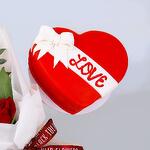 Eucalyptus - 2 шт. message card - 1 шт. red roses - 6 шт. heart shape cake - 1 шт. brown ribbon - 1 шт.