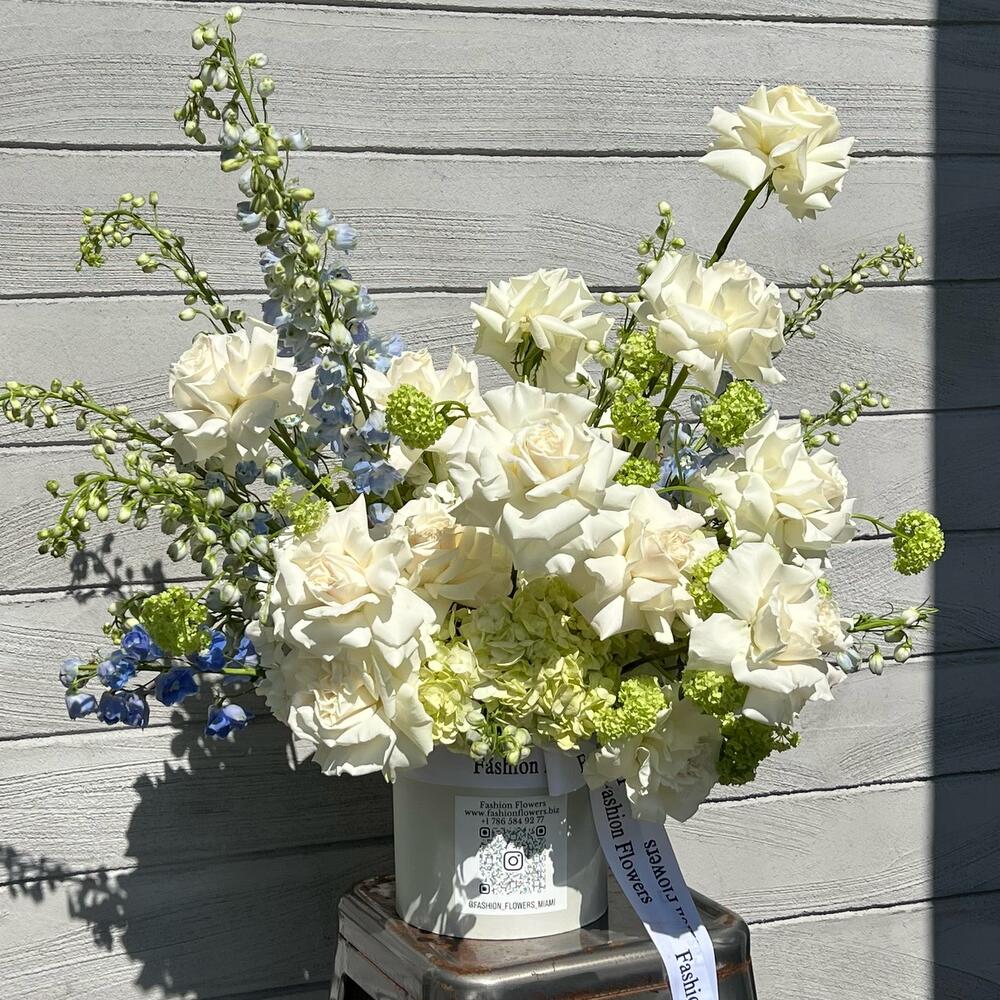 Hydrangea - 8 шт. rose - 28 шт. delphinium - 10 шт.
