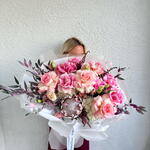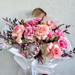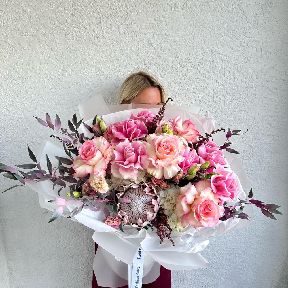 Гортензія - 8 шт. Троянда - 20 шт. Італійський рускус - 10 шт. Протея королівська - 1 шт.