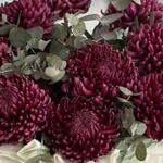 Кошик - 1 шт. Стрічка - 2 шт. Евкаліпт - 11 шт. Калька упаковка - 2 шт. Хризантема Бігуді - 19 шт.