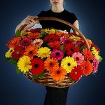 A large basket of colorful gerberas "colors of summer" will lift your mood and promotes optimism. Bright gerbera daisies, like a little sun, warmth and joy, and the bright fresh Salal adds such a special charm floral arrangements. A riot of colors in the bouquet will create a feeling of happy holidays for a long time. Order original basket in the shop "Flower series" and You will be pleasantly surprised by our prices.