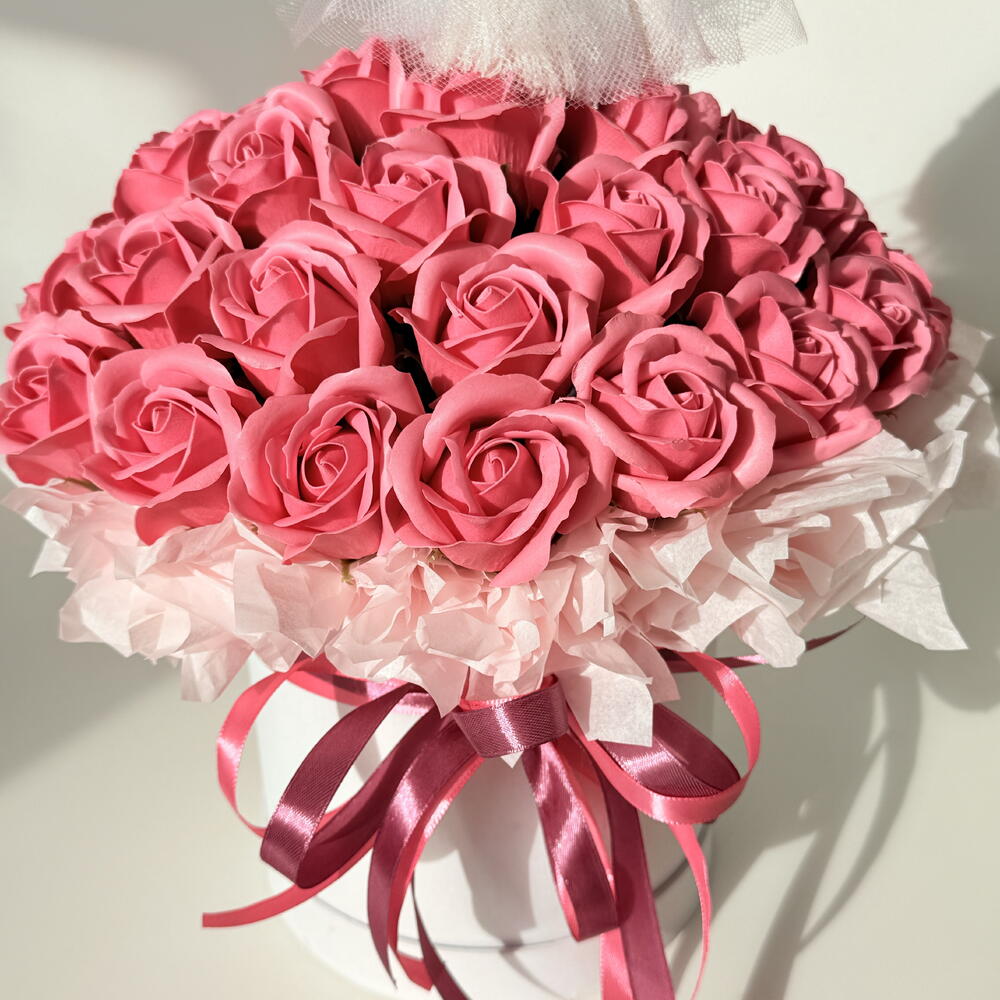 Троянди з мила – красиві, ароматні і практичні! 🌹 Ці квіти — це щось більше, ніж декорація 💖 Кожен пелюсток ти можеш відірвати і вимити ним руки в теплій воді – ніжна піна і тонкий аромат зроблять навіть звичайний момент приємністю. Ти також можеш кинути кілька пелюсток у ванну й насолоджуватися розслаблюючою ванною серед трояндових ароматів. 🌸🛁 А якщо обприскаєш їх своїм улюбленим парфумом – вони стануть натуральним освіжувачем повітря. Запах наповнить приміщення і створить особливу атмосферу. ✨ Красиві як справжні, ароматні як мрія і практичні як мило