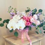 Матіола - 10 шт. Евкаліпт - 10 шт. Троянда - 10 шт. орхідея - 40 шт. Гортензія рожева - 6 шт.