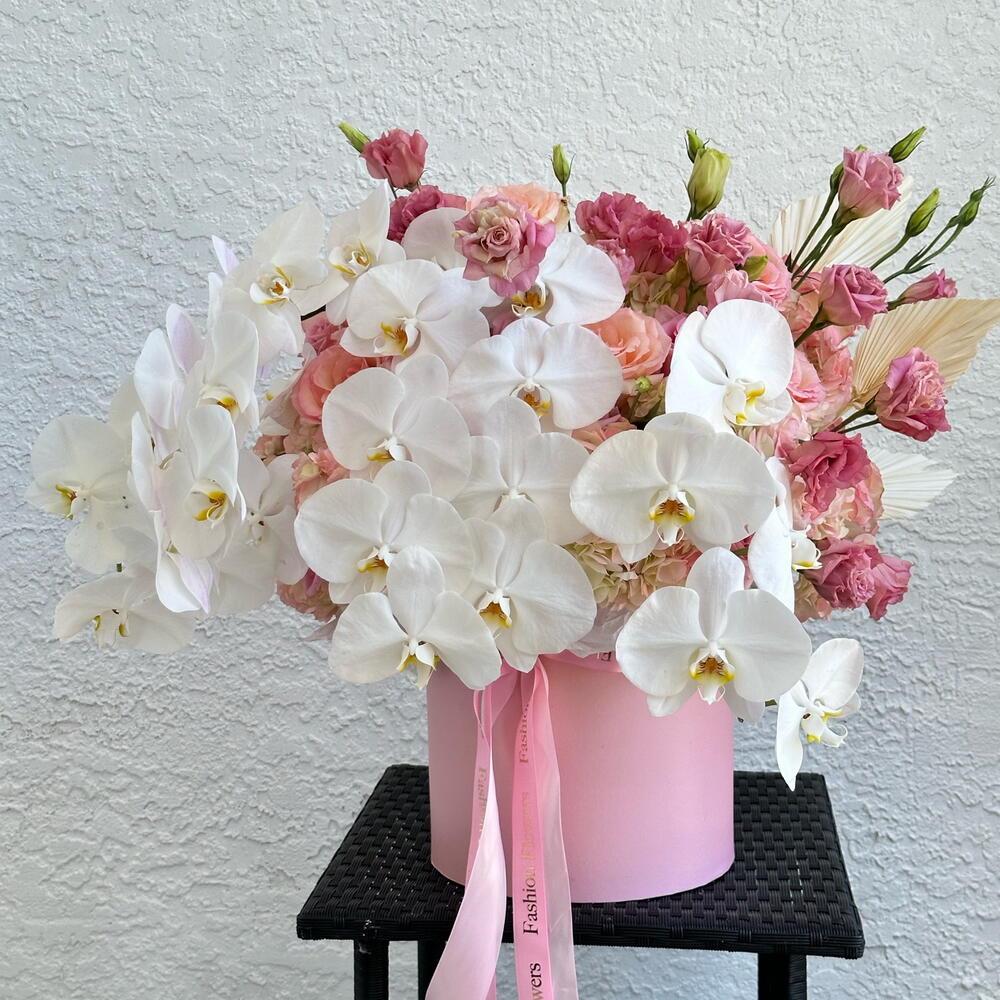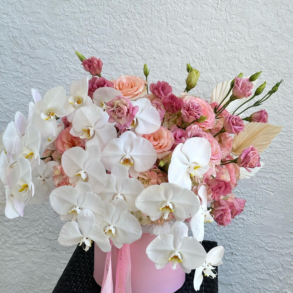 орхідея - 4 шт. Гортензія рожева - 15 шт. Лізіантус Аліса білий - 10 шт. троянда - 25 шт.
