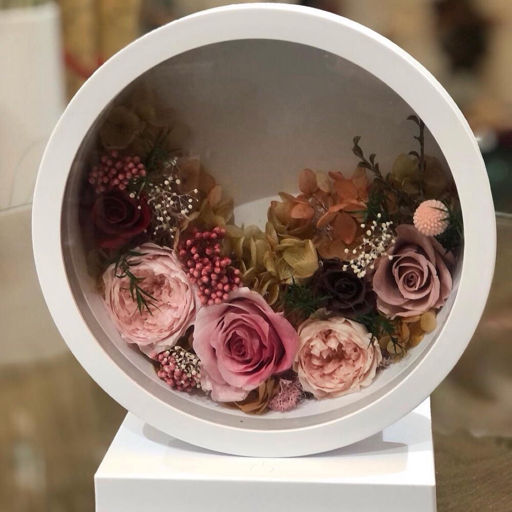 Eternal roses, peonies, hydrangeas, gypsophila, etc Note: The design of the bouquet can be changed to a similar one if the required material is not available
