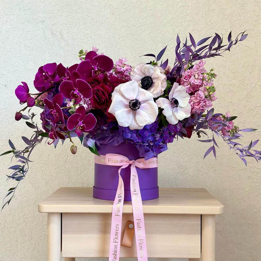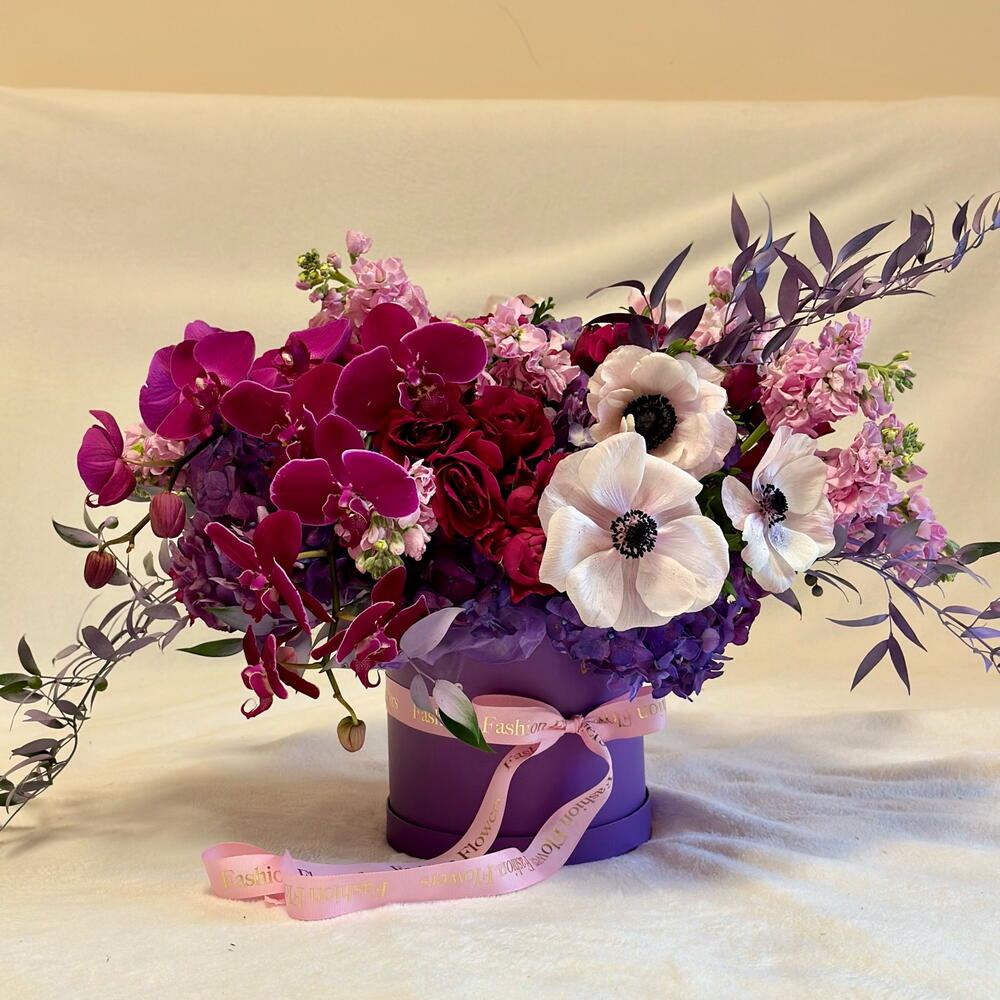 Анемон - 10 шт. Гортензія - 5 шт. Троянда - 10 шт. орхідея - 2 шт. Італійський рускус - 5 шт.