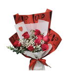 Red rose - 8 шт. Gypsophila - 10 шт. eucalypse - 2 шт.