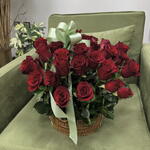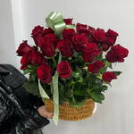 This magnificent gift in the form of 37 velvet red roses, elegantly placed in a stylish box, will not leave any connoisseur of beauty indifferent. Feel the magic of this elegant ensemble, decorated with patches of fresh greenery, which complements the overall harmony of the composition and adds to its naturalness. This bouquet will be an ideal gift for any occasion, and it will certainly conquer the heart of a loved one with its unique velvet charm.