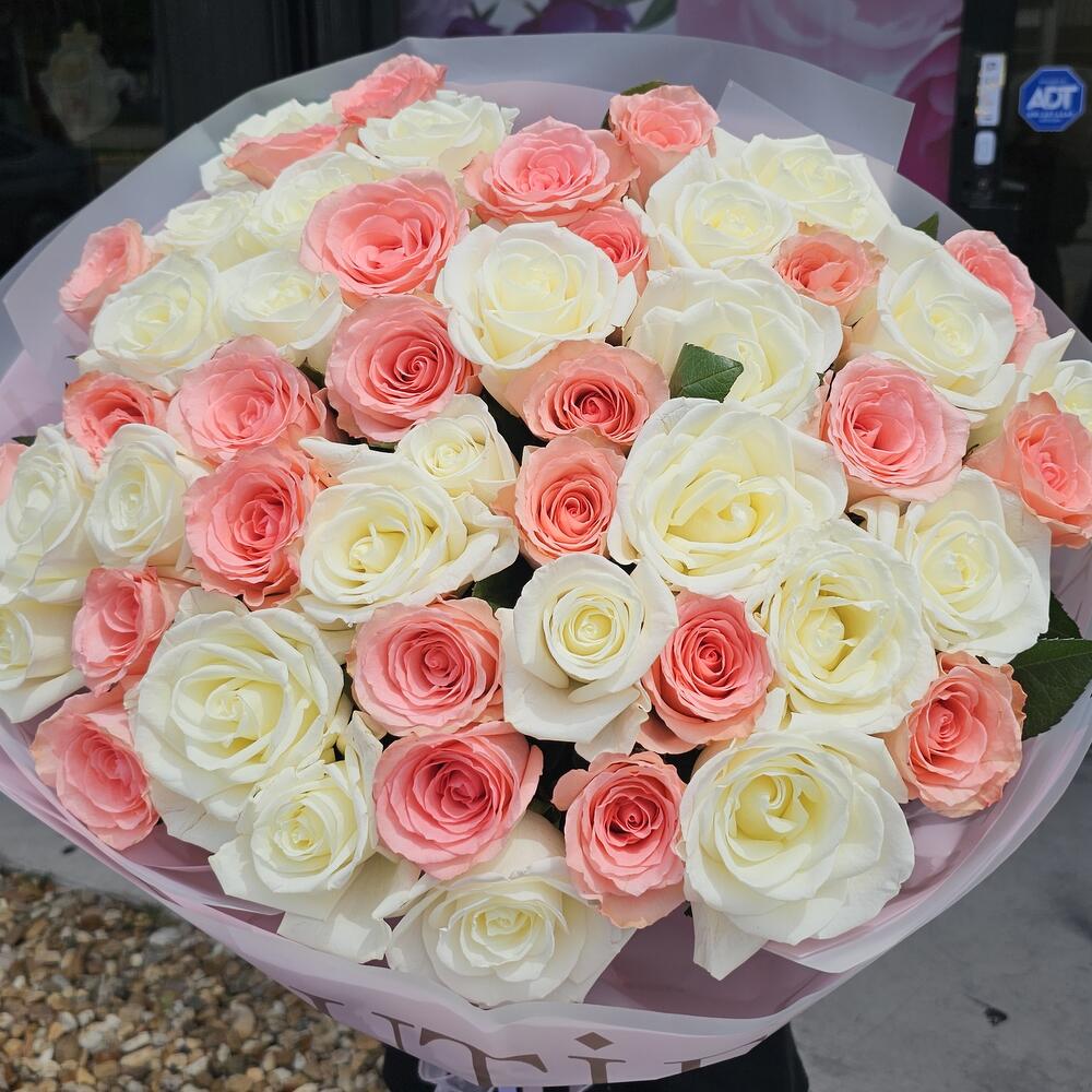 Відчуйте вишуканість і чарівність нашої добірки Florists Specials. Випромінюючи чисту вишуканість, цей яскравий букет містить чарівне поєднання 25 розкішних білих троянд Tibet і 25 ніжних рожевих троянд Flirty. Це прекрасне поєднання неодмінно справить незабутнє враження, відображаючи красу природи в її найчистішому вигляді. Ідеально підходить для будь-якої нагоди, яка потребує чогось особливого й щирого. Насолоджуйтесь розкішшю троянд, доставлених прямо до вашого порогу.