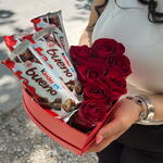 Kinder chocolate - 4 шт. heart box - 1 шт. червоні троянди - 7 шт.