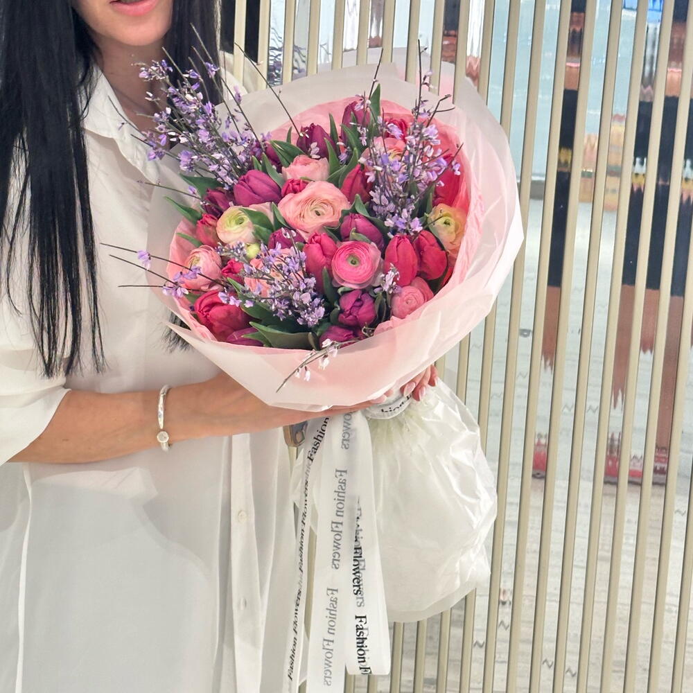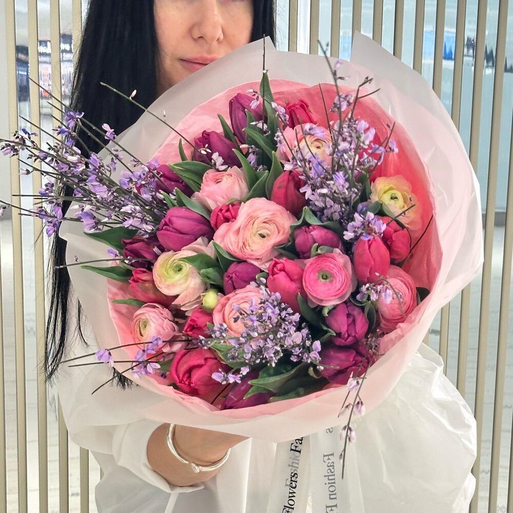 Tulips - 20 шт. ranunculus - 10 шт. genista - 5 шт.