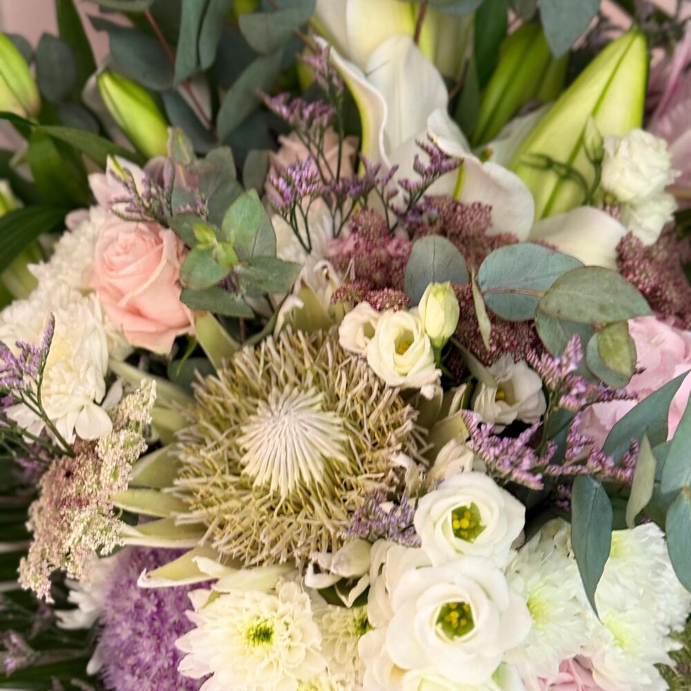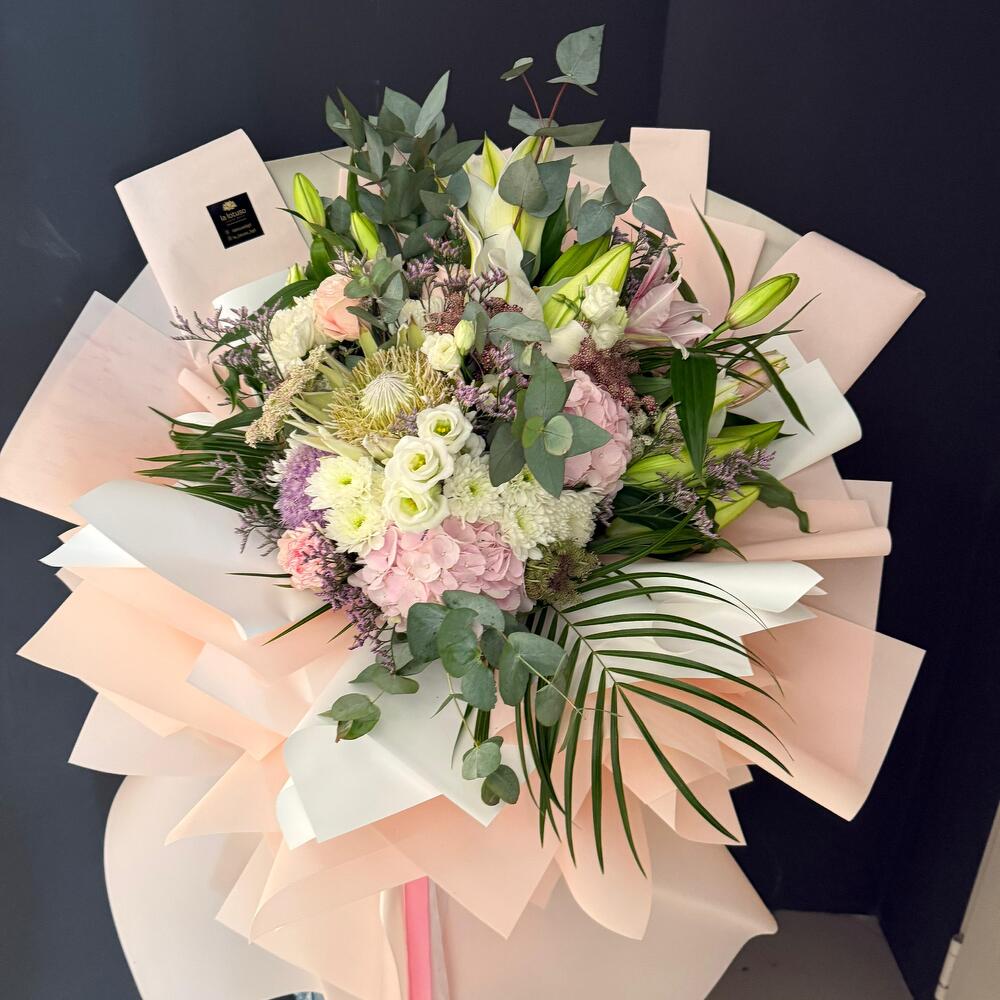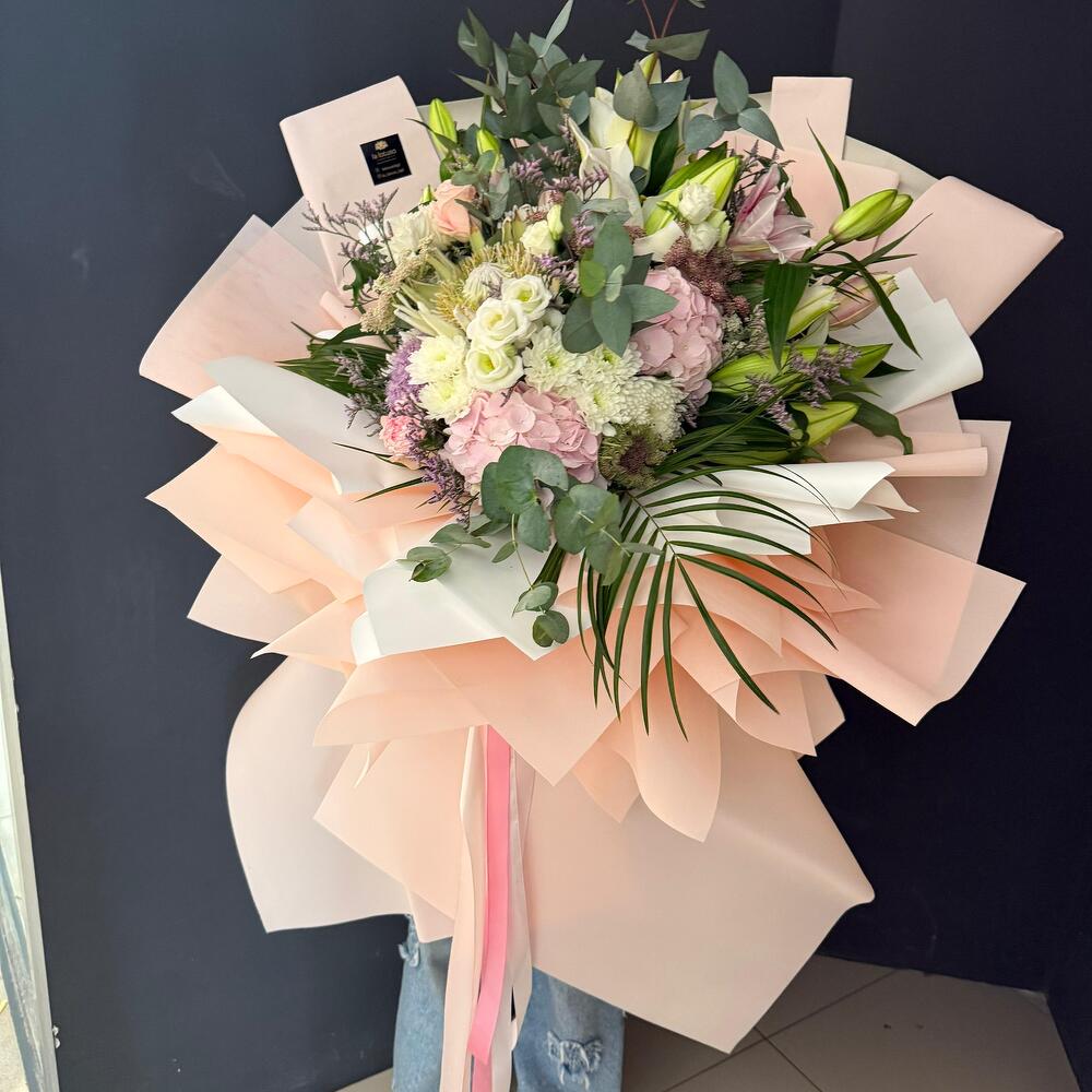 Celestial Harmony is an XXXL mixed flower bouquet that blends a stunning variety of blooms into a harmonious, vibrant display. This bouquet symbolizes unity, balance, and the beauty of diversity. Note: The design of the bouquet can be changed to a similar one if the required material is not available